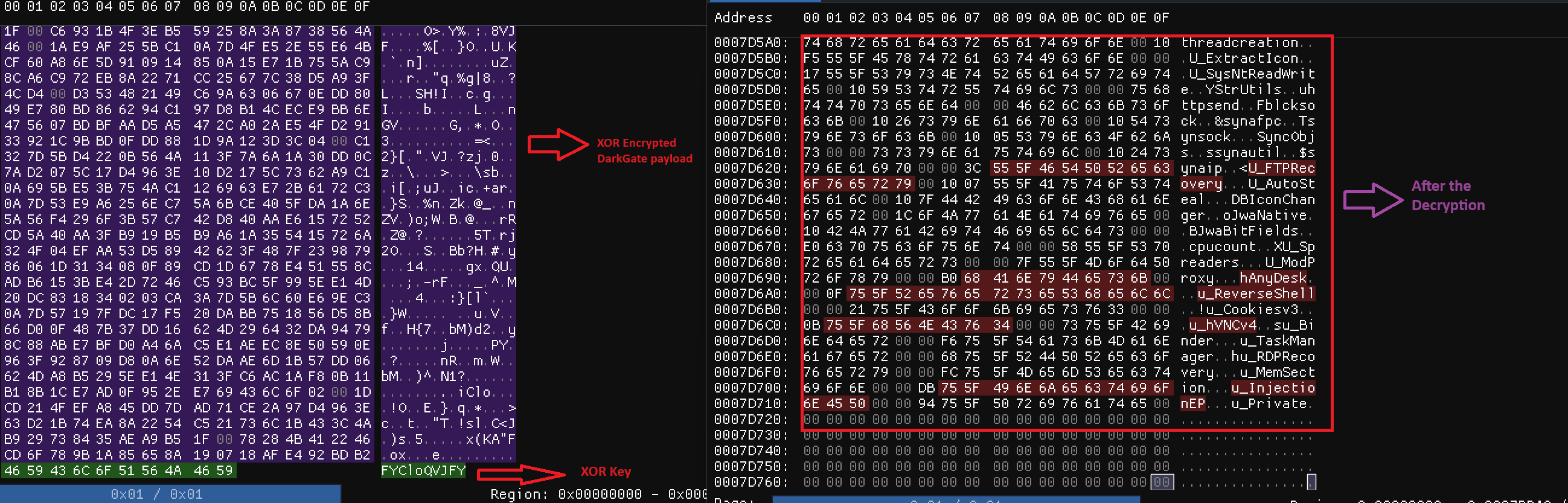 Figure 11 – Installer of DarkGate 6.1.6 and XOR decryption method.