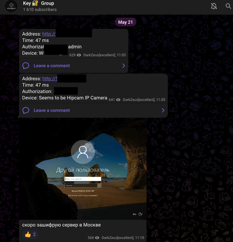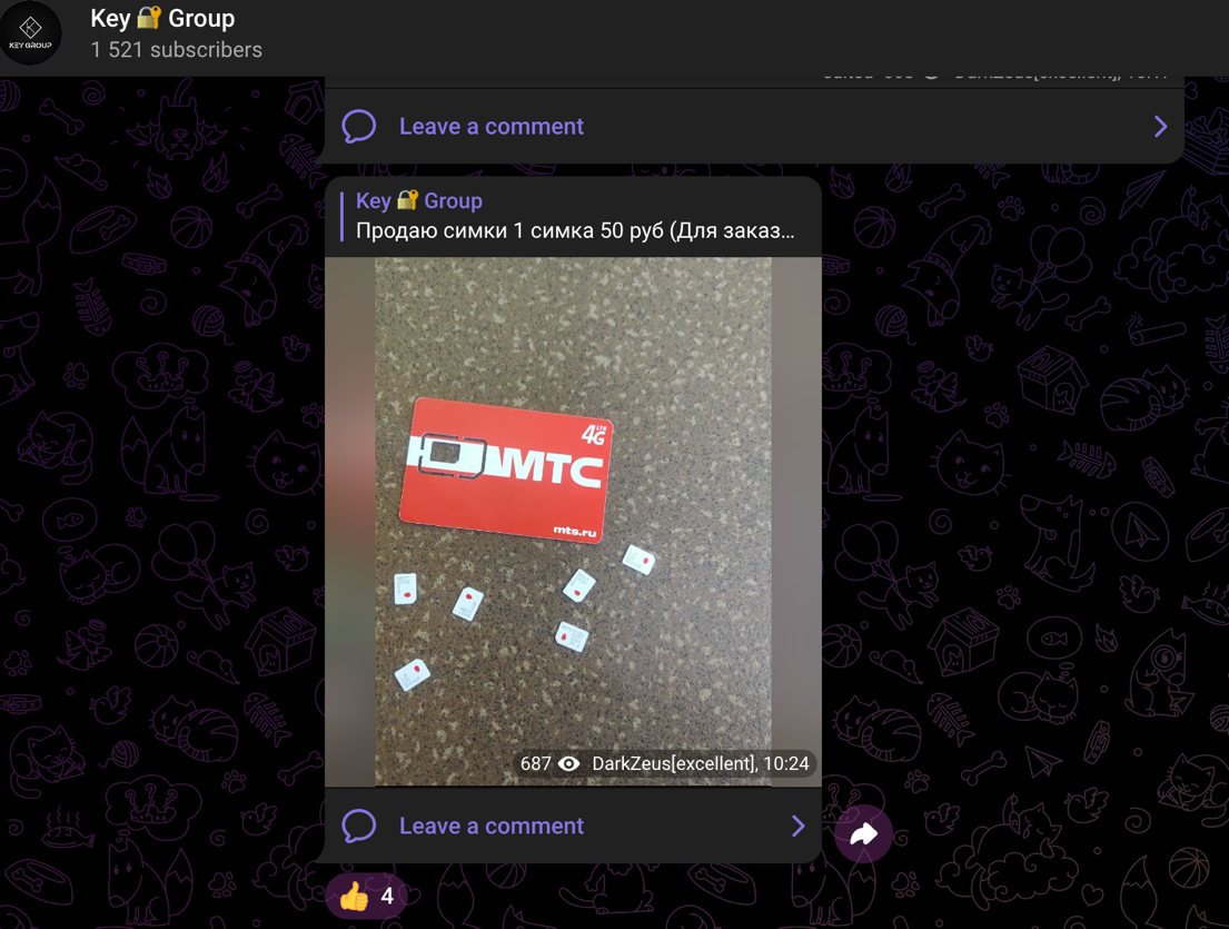 EclecticIQ analysts observed that Key Group used a private Telegram channel for selling SIM cards, sharing doxing data, and remote access to IP camera servers. (Figure 3, 4)
