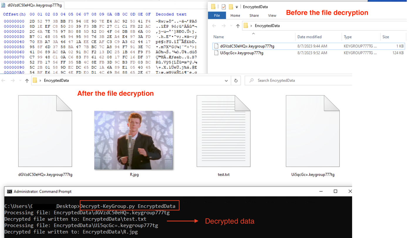 EclecticIQ analysts assess that Key Group ransomware can be classified as a low-sophisticated threat actor. The ransomware samples contained multiple cryptographic mistakes that enabled EclecticIQ to create a decryption tool for this specific ransomware version built in August 03,2023.
