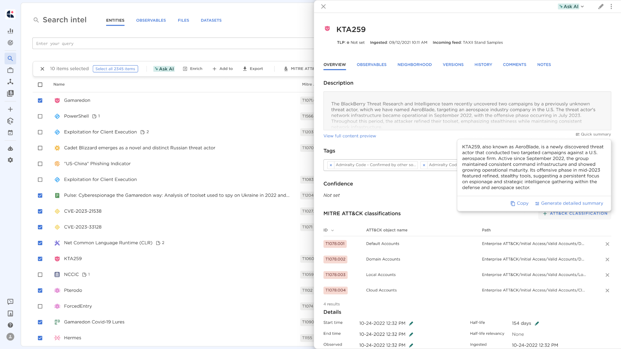 The EclecticIQ AI features have already been helping you work faster and smarter, from using AI assistant as your on-demand research partner, to querying complex data sets using NLP search, aligning requirements with Intelligence Compass, and extracting key entities with AI entity extraction. With the upcoming 3.6 release of Intelligence Center, we’re expanding the EclecticIQ AI Suite with the productivity-boosting features: Summarization , Content generation with templates and Translation. These tools are built to help you move faster, go broader, and stay focused on what matters most.