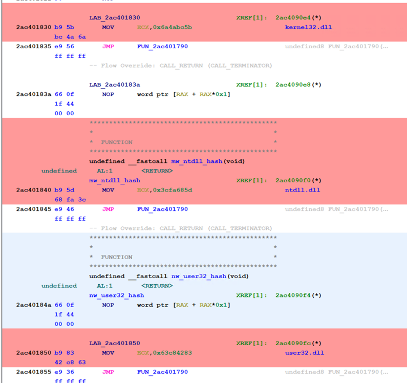 Figure 7 shows the decoded Windows libraries from ROR13 hashing algorithm: